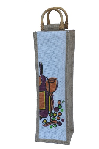 Jutová taška na 1 fľašu - s motívom
